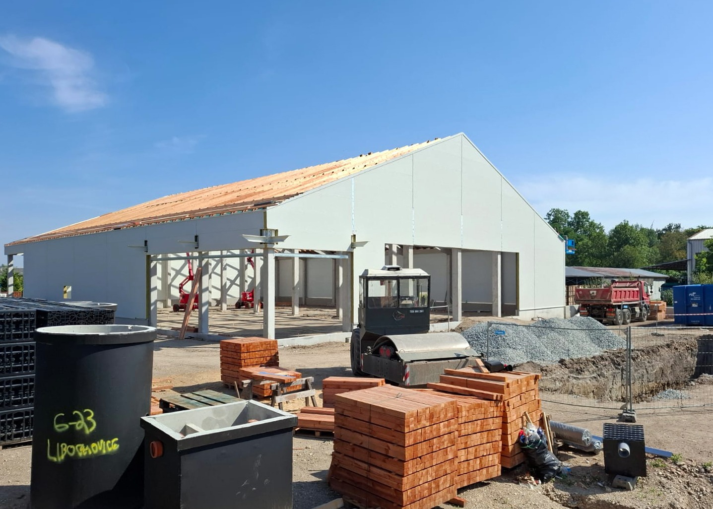 Pro projekt Billa v Libochovicích byla zajištěna kompletní dodávka a montáž železobetonové prefabrikované konstrukce, která zahrnovala i zpracování veškeré potřebné dokumentace – od kladečského schématu po dokumentaci skutečného provedení. Prefabrikáty s hladkým povrchem v přírodních šedých odstínech byly vyráběny s důrazem na kvalitu a estetiku. Součástí dodávky byly i speciální tmely pro trvalou těsnost a veškeré certifikace potvrzující shodu s normami.